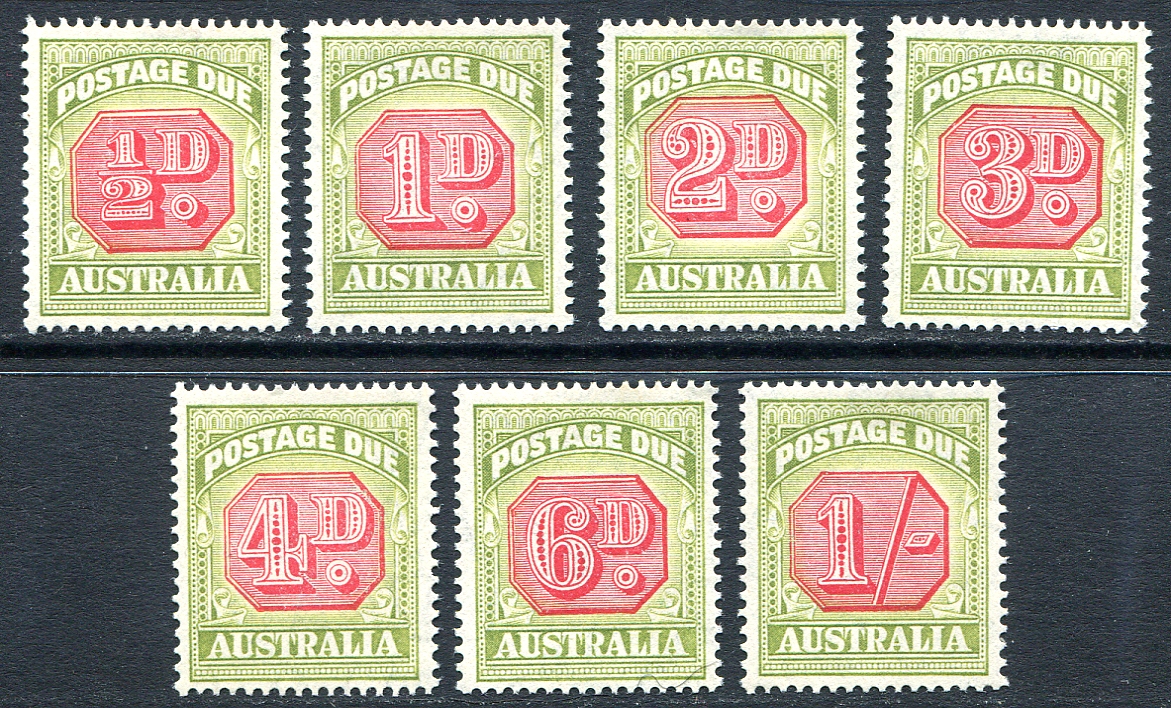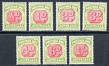 Australia #J64-J70. VF mint Lightly Hinged complete set of the 1938 Postage Due series. A lovely example of the pre-WWII series. The next Postage Due set would not be issued until after the war! 2025 Scott US257.00 =