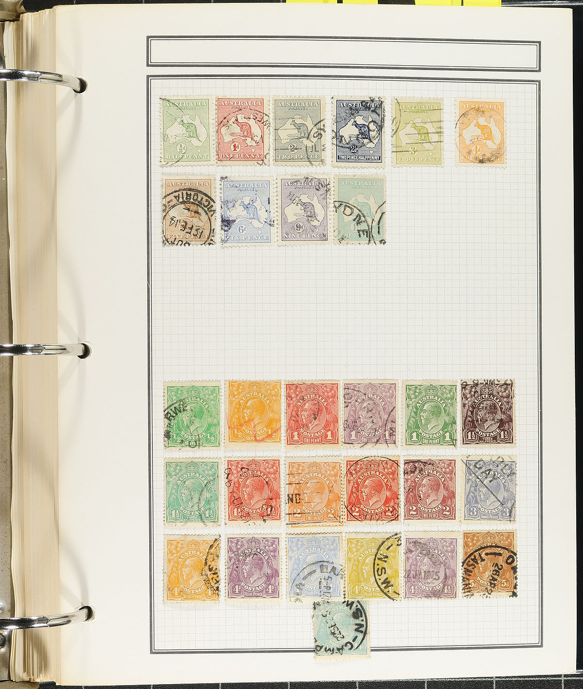 Australia Postmarks - Collection of Australia Northern Territory and South Australia collected for town postmarks. The collection contains 110 stamps (on and off paper), and roughly 44 covers, with at least one stamp representing over 50 different towns, ranging from A to Y. noting Albert Hill, Appila, Kangaroo Flat, Mount Barker, and other towns. The material generally ranges from the 1900's to the 1970's, with a variety of postmark types including cds, squared circles, machine, and other types. The lot also includes maps, photos, and a few articles, which will add a visual component to the collection. Estimate =