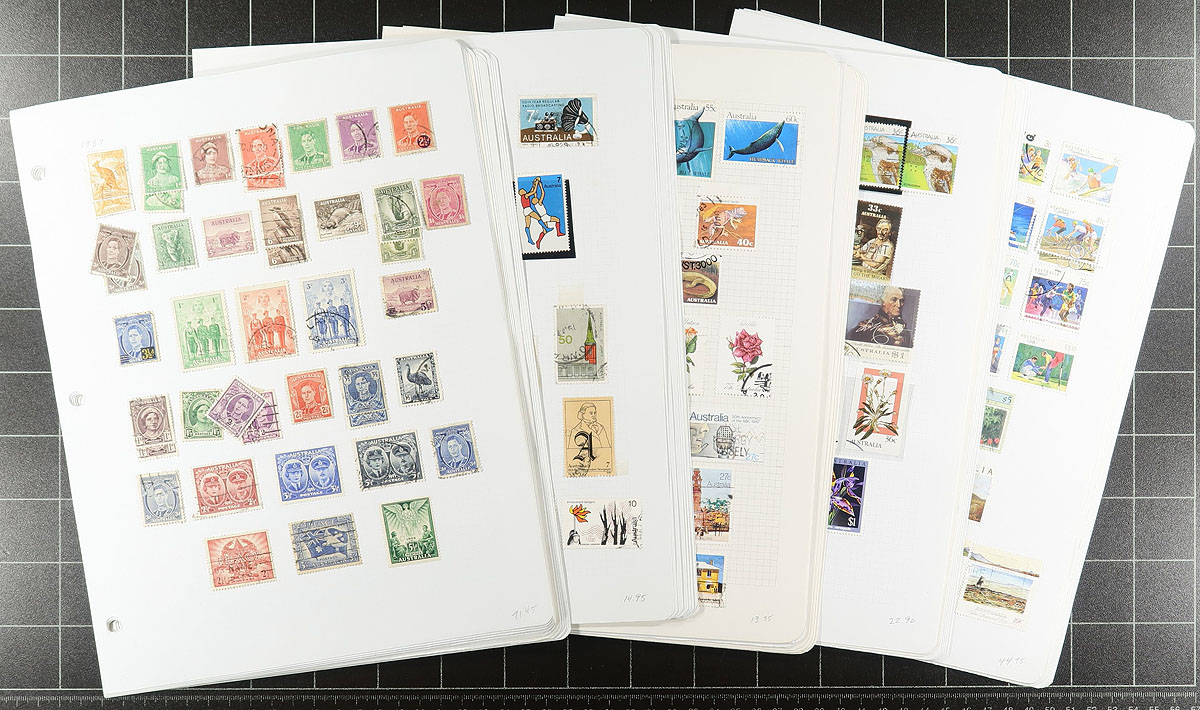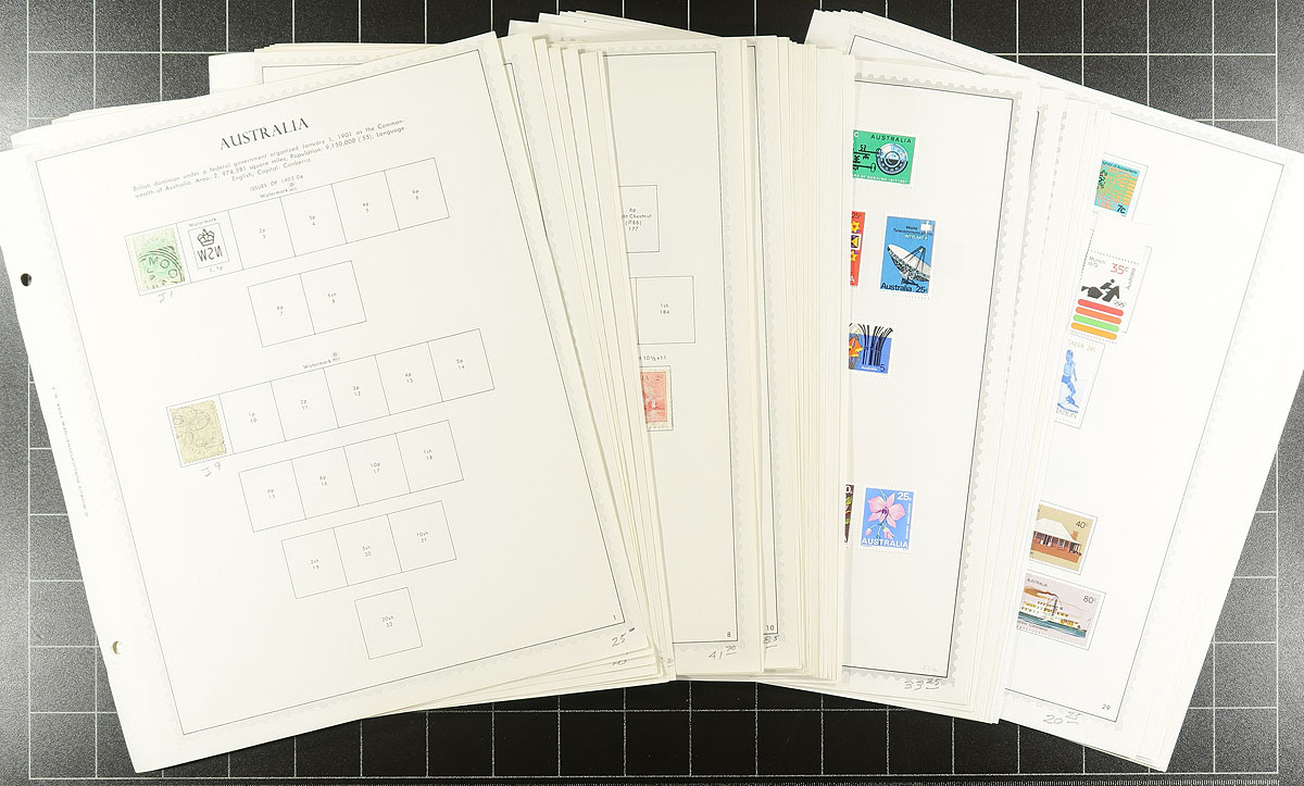 Australia #166/1305. Mint and used 1937-1992 period issues on pages, 1,250 stamps in total. Also includes sixty-seven 1946-1995 covers (mostly First Days). The covers are counted as used stamps for $85.25 in Scott by the owner. Total owner's older 2010 Scott US$1,120.75 =