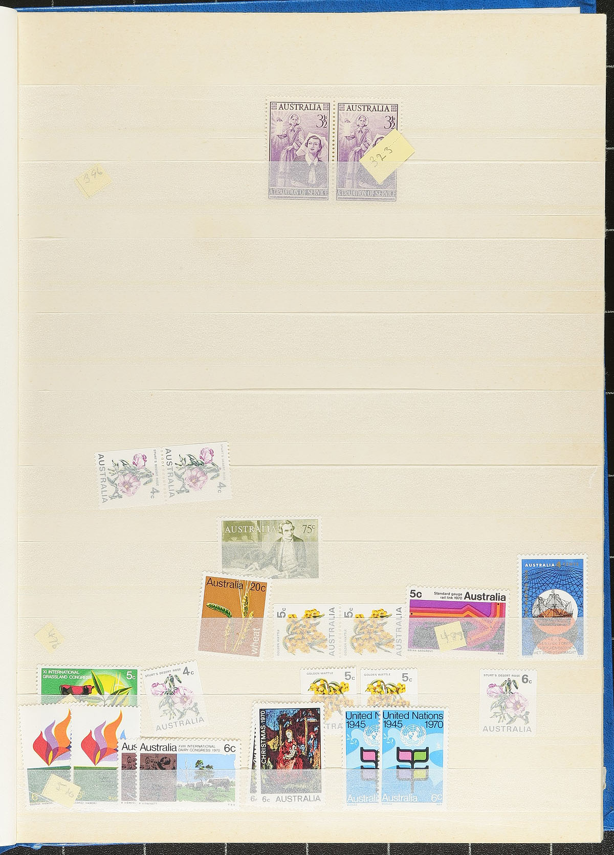 Australia - Nice collection of never hinged blocks from Australia, 1930's-1990's, in over 15 stock pages, generally ranging from Scott #267/1851. A spot check indicated some blocks cataloguing in the $10 to $20 range and up, including #376 ($72.00). Face value alone is at least AUD$450.00 of usable postage. A lovely lot with a variety of purposes for collectors and dealers alike. Owner's older 2012 Scott US$986.00 =