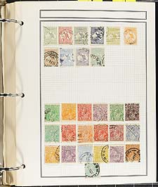 Australian States - Group of 26 mint and used Australian States stamps in a dealer counter book. Each page identified and priced on dealer's sales pages, with some representation from each State, except New South Wales. Most stamps cataloguing in the $10.00 to $45.00 each range. A few faults with a few stamps, overall fine to very fine. 2025 Scott US$591.00 =