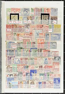 Australia and Area - Mint and (mostly) used duplicated selection of several hundred stamps, all laid out by the consignor on ten used stockpages from a disassembled stockbook. The lot includes regular issues, "Back of the Book" material, Australian Antarctic Territories, Cocos and Christmas Islands etc. All identified and valued by the owner. Owner's total older 2013 Scott US$1750.00 =
