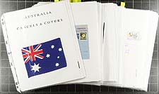 Australia Literature - Specialized Brusden-White Australia loose leaf catalogue, in two volumes, with sections running from 1 to 11, for issues 1901 to 1975. A wonderful and informative study of issues, including proofs, plate varieties, die flaws, along with specialized information on postage dues, booklets, and some postal rates. Pricing is from 1999, but the information is invaluable, with many illustrations to help guide collectors in their studies of these beautiful issues. Estimate =
