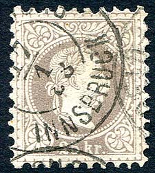Austria #39. Fine used example of the 25kr grey lilac from the 1874-1880 Emperor Franz Josef series. Nice clean perfs all-around, and clear dated (Jan 17th 1888) Innsbruck CDS postmark. 2025 Scott US$190.00 =