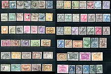 Azores #25/234. Two pages worth of used Azores with a good range of issues, overprints, common design issues with some colour and perforation variants here and there, and some nice cancels throughout. Better singles include #34, 42, 47, 49, 53, 53a and 54. Expect a few minor faults, but a generally clean grouping. 2024 Scott US$806.10 =