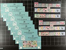 Bahawalpur - Ten Packets, each containing #1, 2-6, 16, 17, 22-25, 26-29, O1, O2, O12, O14-O15, O25-O28. Unusually fresh and VF mint NH or postally used selection of 25 different 1945-1949 period issues from the short-lived autonomous formerly Indian state. Some of these stamps are surprisingly hard to find, in no small part due to the very short time period that these were valid issues. What were once "all different" sample packs now catalogue US$96.50 per pack of 25! This lot contains 10 packs. A perfect acquisition for the Ebay or show seller. 2024 Scott US$965.00 =