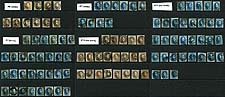 Belgium #6, 7, 10, 11. Old-time accumulation of used 1851-1858 imperforate issues, with 102 stamps in total, neatly identified and arranged on three stocksheets. Includes #6 x10 (US$8.50 ea), #7 x39 (US$8.00 ea), #10 x21 (US$9.00 ea) and #11 x32 (US$9.00 ea). Most close cut / close margins / cut-in, but would make for a great study group for either the stamps or postmarks. 2025 Scott US$874.00 =