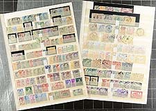 Bangladesh and Pakistan #5/643, #O1/O47 and #4A/1063, #O1/O90. Post-partition (first from India and then from each other) issues, starting with overprints on India stamps up to the 1990's with some nice "back of the book" mixed in. A mix of mint and used all neatly organized on manila stockpages. The Bangladesh includes better singles such as 4 mint copies each #172 & #174 and 5 and 18 used copies (respectively). There is more value in the Pakistan material, noting used such as #42b, #43, #55-62 (3 sets), #O12 (7 copies) and mint officials #O25, #O26a. As a bonus there are four pages of mint Bahawalpur issues contributing an extra couple hundred dollars of catalogue value. Nicely identified, condition appears to be quite good with up to 20 of a type (but most with slight duplication). From a collector’s duplicates which have never seen the market before. Estimate =