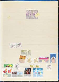 Australia #414/970. Clean and diverse lightly duplicated stock of several hundred 1966-1985 period decimal currency issues neatly arranged in a 32-page stockbook. Noted face values to $10.00 and some better catalogue value items, gutter pairs, souvenir sheets, etc. A useful lot. Total face value AUD $260.00 in CDN Dollars =