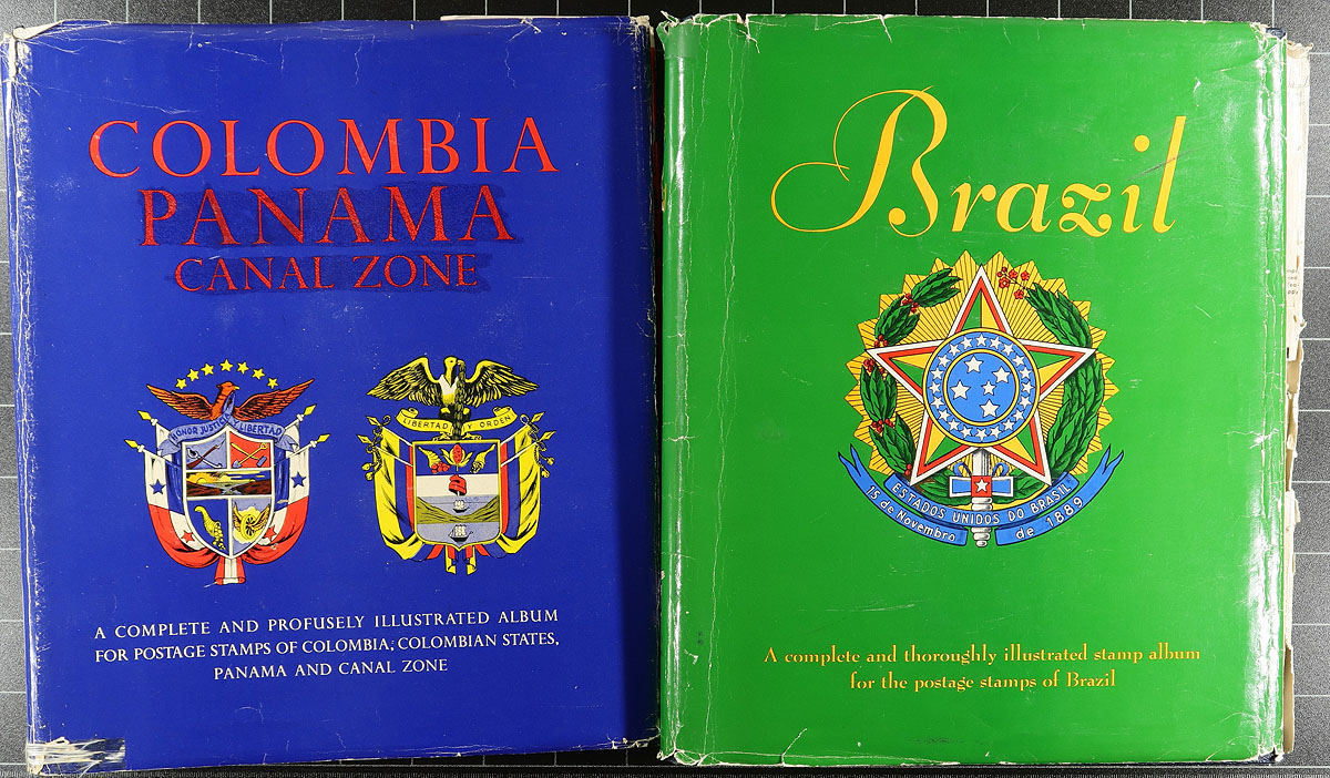 Brazil and Colombia - A pair of 1960’s Minkus albums (with dust jackets), each moderately filled with a selection of used and mint stamps, with a bit from the back of the book and some souvenir sheets, with not much after 1970. There is some nice 19th century material, particularly for Brazil, but there could be goodies throughout. These albums were (a bit optimistically) catalogued at about US$1700.00 over 20 years ago. Estimate =