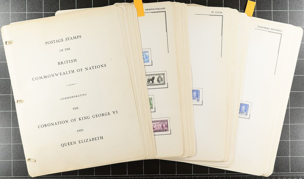 British Commonwealth - Complete mint collection of 1937 Omnibus Coronation issues, including non-common designs in a Sargent Collector's Album. The lot contains 187 stamps (all sets), all mint hinged on pages with a current catalogue value totaling US$166.00 ($224.10 CDN). A nice clean lot in a specialized album for these issues. Estimate =