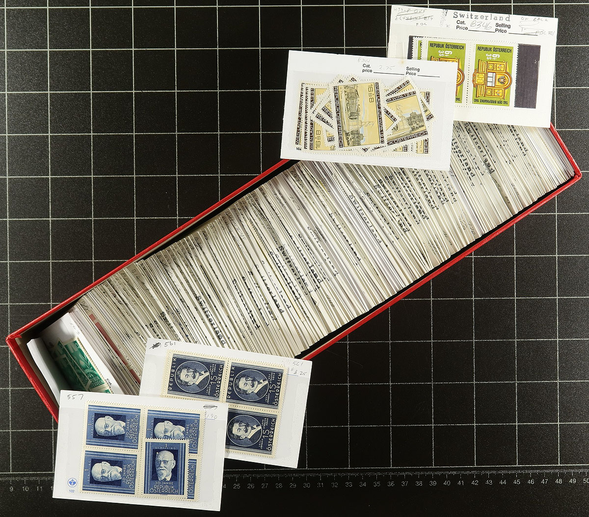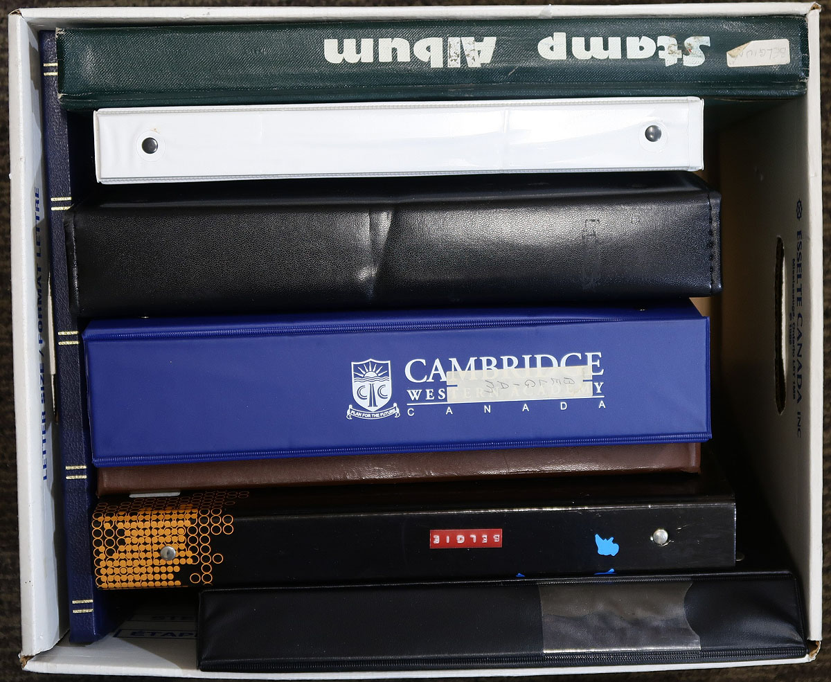 Canada #75/2831. Useful used in a U-Haul box. Two distinct sections. The first is two red dealer’s boxes stuffed with almost two thousand "102" cards with a range of used Canada singles from Queen Victoria to the 21st century. About ½ of one box is used multiples from pairs up to blocks of 8. The cards have light pencil notations which could be easily erased. The second part is a used assortment, sorted by Scott number into #8 envelopes (KGVI onwards), in quantities of 1-20 of a type, all packed into four attractive "photo" boxes. The last box may have a touch of mint material. Besides the thousands and thousands of stamps, there is good "supplies" value here. Estimate =