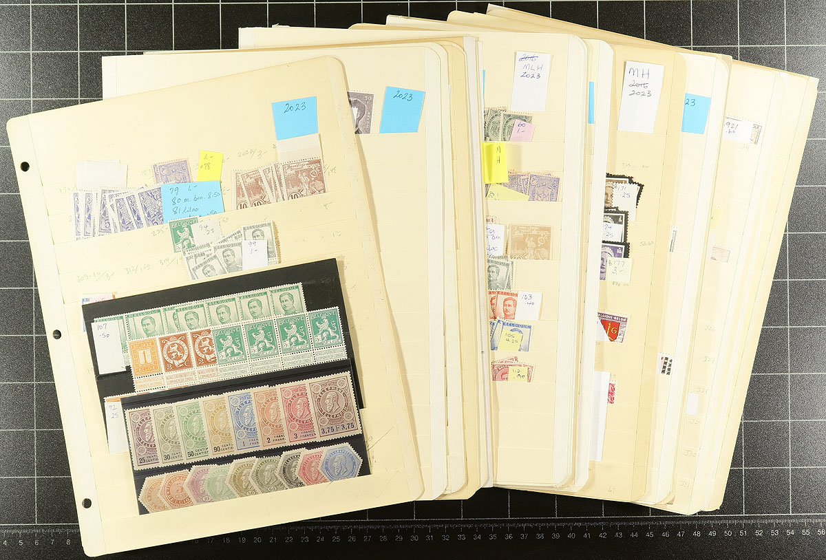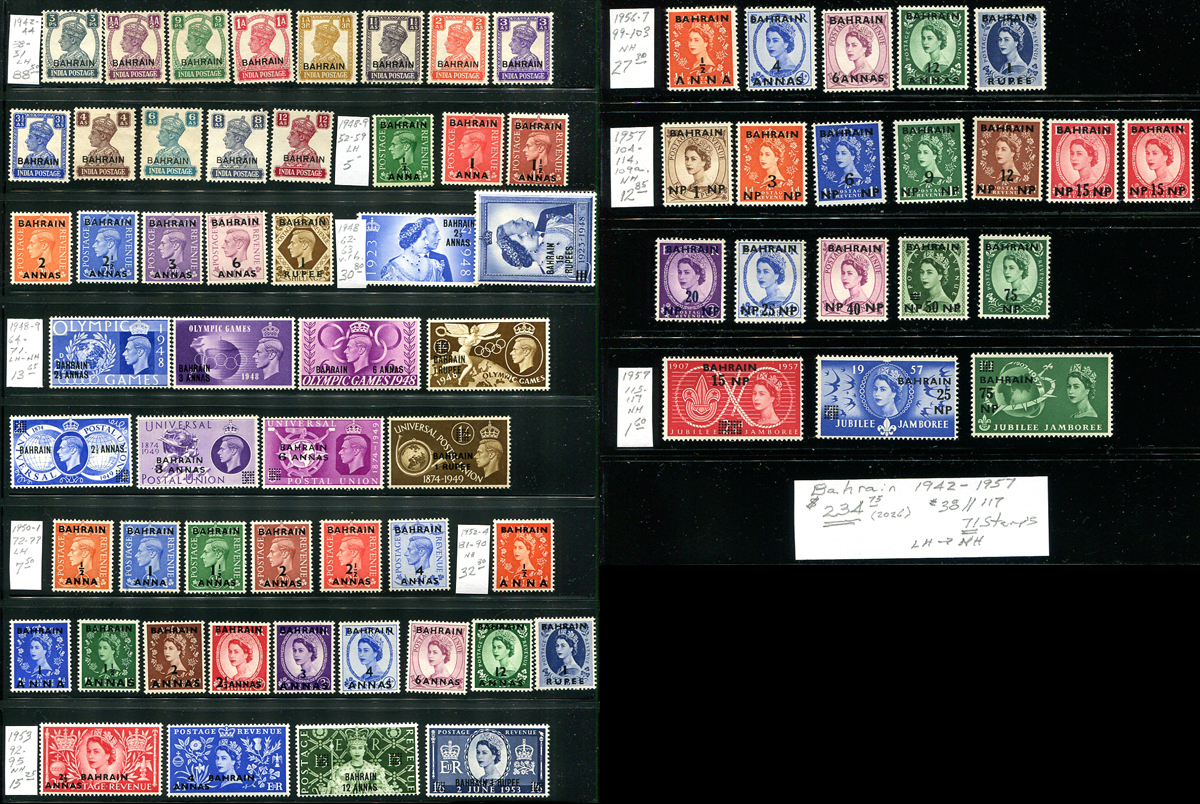 Brunei #14/508a, N3/N10. Lucky thirteen manila stockpages with a collector’s stock of mint and used Brunei from the 1907 Brunei River series up to the early 2000's. Neatly arranged and identified by Scott numbers with current catalogue values and up to 8 of a type. Better items up to $15.00 catalogue value were seen (such as #59-60). Some perforation variants are noted, along with common design issues and then far-less-common and mostly used issues from the 1980’s onward. There are even four overprints from Japanese occupation during WWII to round things out. Unusual and with lots of value. Estimate =