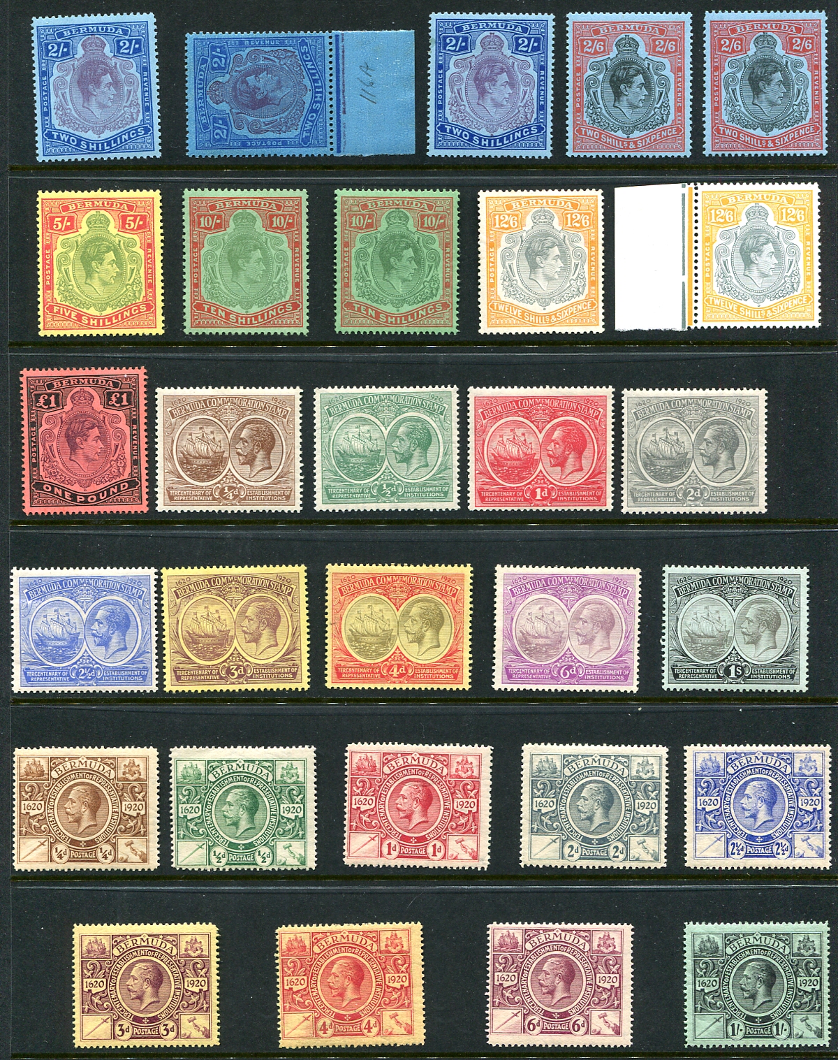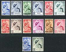 British Guiana #230-241, 253-267. Duo of complete mint sets, including the 1938-1952 George VI Pictorial series (Lightly Hinged) and 1954 QEII Pictorial series (Never Hinged). A very colourful duo of sets. 2026 Scott US$235.10 =