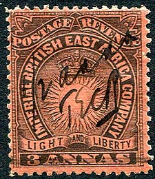 British East Africa #34. Fine centered mint example of the seldom-offered 1891-1895 issued ½a on 3a black and red, with manuscript surcharge. Signed "T.E.C.R." by T.E.C. Remington (making this the 1895 issue). Hinged, with only a trace of original gum, but does not detract from this rarely offered surcharge issue. 2025 Scott US$700.00 =