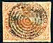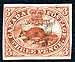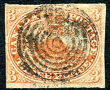 Canada #4. VF used example of the 1852 issue 3p red beaver imperforate, with three large margins and close, but still clear at top left. Attractive light Toronto "diamond grid" postmark. 2025 Scott US$200.00 =