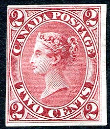 Canada #20TC. VF imperforate proof of the QV 1864 issue 2c dark rose on India Paper. A very attractive example of this desirable early proof. 2024 Unitrade =