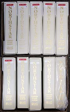 Canada #25/3206. Mostly used collection from the Large Queens up to 2021 on "Northstar" CWS full colour album pages. From the Admiral era onwards the material is either quite complete or quite sparse. On pages which have stamps, the collector has put the page into a clear page protector and put Scott numbers on stickers, leaving the pages as-new. With the addition of the page protectors, the collector mercifully purchased more albums to hold this expanded size and what retails as five volumes is spread over 10 binders and 7 matching slip cases. The collection includes a couple of thousand different stamps, but the value is in the album, with the extra pieces retails at over $1600.00, and is remarkably current. Estimate =