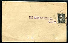 Canada #34 Wrapper. Attractive single-franking example of the 1/2c black Small Queen on circular / printed rate wrapper posted from (likely) Toronto to the Massey-Harris Company. An attractive addition to any postal history collection, or "plus-value" add-on to a traditional stamp collection. 2024 Unitrade =