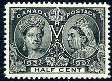 Canada #50. VF mint Never Hinged example of the 1/2c black 1897 Queen Victoria Jubilee issue, with Post Office fresh colour and pristine gum. A very nice example of this issue. Unitrade catalogue for VF NH is $450.00. 2025 Scott US$275.00 =