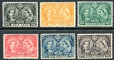 Canada #50-54, 56. VF mint Lightly Hinged six-pack of 1897 QV Jubilees from the ½c to 5c, plus 8c. A very clean group, with great centering and near perfect Lightly Hinged gum on all. A great start to a set. 2025 Scott US$407.50 =