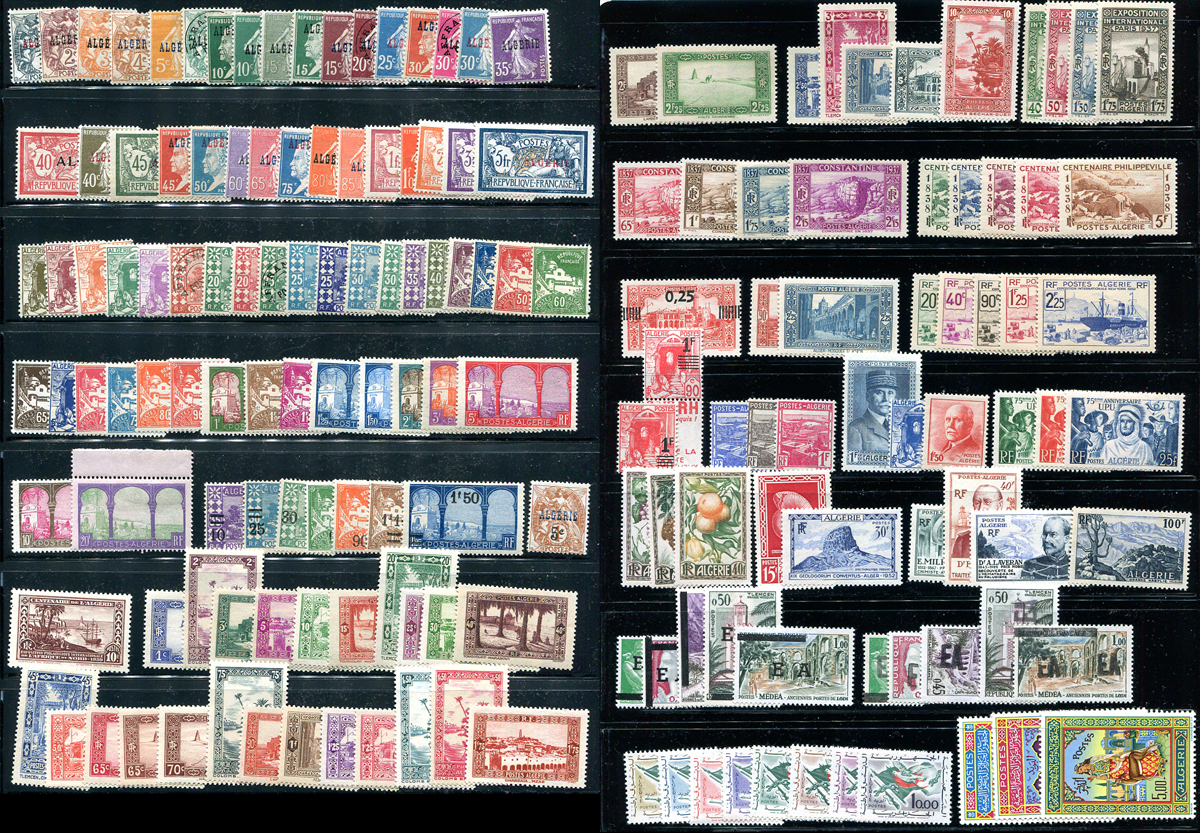 Algeria #1/343. Two-page mint selection of earlier regular issue Algerian stamps including a complete run of inter-war issues (to #137) and then a selection of better sets and singles up to post-Independence 1965. The first early, long sets are complete and there is both the typographed and handstamped "EA" overprints on French issues for the 1962 Independence. 2024 Scott US$572.65 =