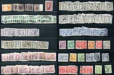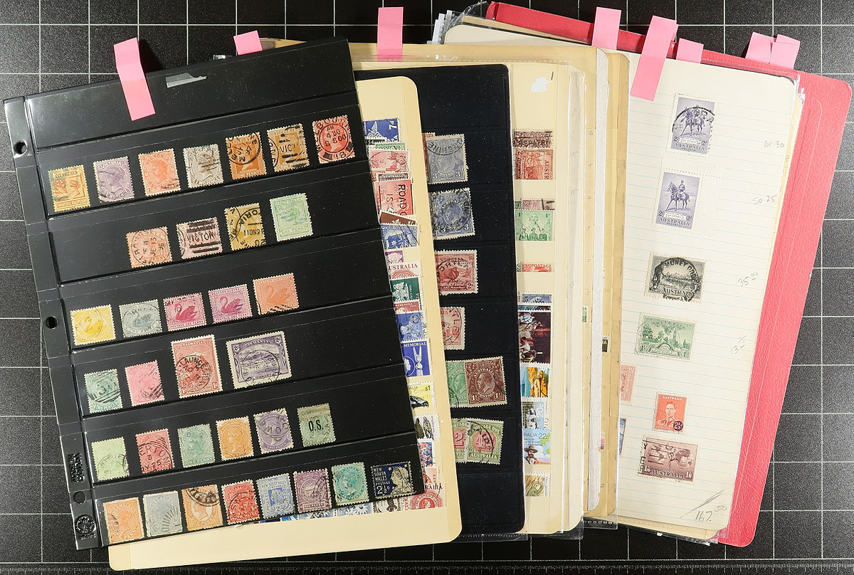 Australia - Nice accumulation of used Australia, 1913-2009, containing over 1,300 stamps in roughly 25 stock or album pages. The lot generally ranges from Scott #1/3189, including a selection of Kangaroos, KGV Heads, and back of the book material. A spot check indicated a few stamps and partial sets cataloguing $10 and up, with owner's 2018 Scott catalogue value for the collection totaling US$1,776.00. Duplication up to 3 to 5 for some issues. A good lot for the Australia or Commonwealth collector, a few faults expected, overall fine to very fine. Estimate =