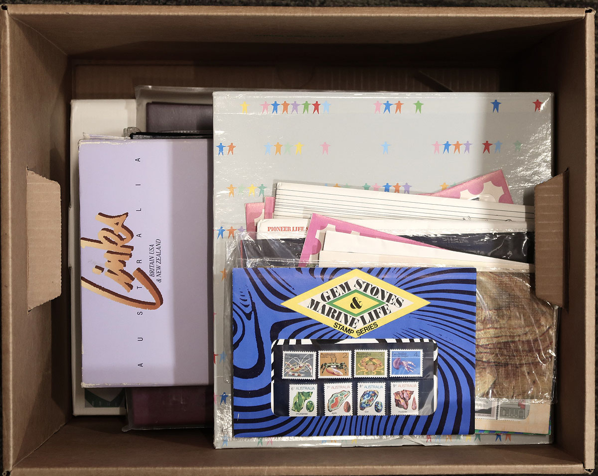 Australia - Group of roughly 45 Australia presentation and annual collections, 1970's-1980's, noting over 40 presentation packs with singles, sets, a few specimens from the 1970's-1980's, along with two still sealed annual collections from 2010 and 2012. Some mild duplication found within, still a nice clean lot with at least a few hundred dollars of face value material. Clean and very fine. Estimate =
