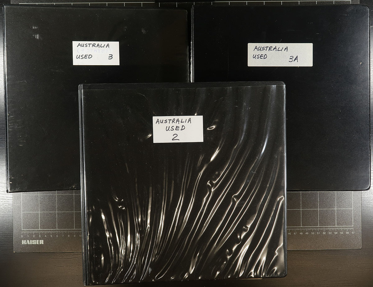 Australia #1523/4605. Extensive used accumulation of regular issues circa 1996 into the 2010's on over 100 manila stockpages and packed into three binders. Coverage is strong in some areas and thinner in others, not unusual give the drop in mail that accelerated in the new Millennium. There are up to a dozen of a type, including lots of sets (with many of the higher values paying overseas rates). Better singles include $10 Kakadu (#1535) and Devil’s Marbles (#1846), plus the $20 Uluru (a dozen copies of #1982). A few thousand stamps are neatly organized and identified. Mid-value stamps from this era often catalogue $2-$4. per stamp, which will lead to a massive total catalogue value. Holdings this modern are not seen very often. No souvenir sheets. Estimate =