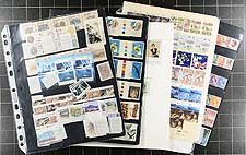 British Commonwealth - Group of roughly 225 British Commonwealth first day covers, generally ranging from the 1970's to the early 2000's, with better representation from Australia, New Zealand and area, Great Britain, British Virgin Islands, and a few others. We note singles, several sets, souvenir sheets, gutter blocks (roughly 30 from Australia with Tasmania postmarks), and high denomination frankings. A nice group of covers for collectors and dealers alike. Estimate =