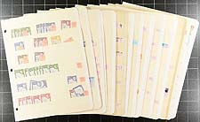 Azores #39/313, J2/J47, P2/P5, Q1/Q12, RA1/RA11, RJ1. A tidy 16-page collector accumulation with good coverage of regular and "back of the book" issues. Both mint and used, with each stamp identified by Scott and a 10-year-old catalogue price. Some notable singles include #47 (mint and used), #53 (x5 used), #53a (used), #54 (x4 used). Lots of Azores and Republica overprints and Portuguese colonial common design issues. Up to 10 of a type, with some cancel potential amongst the used. Lots of value here. Estimate =
