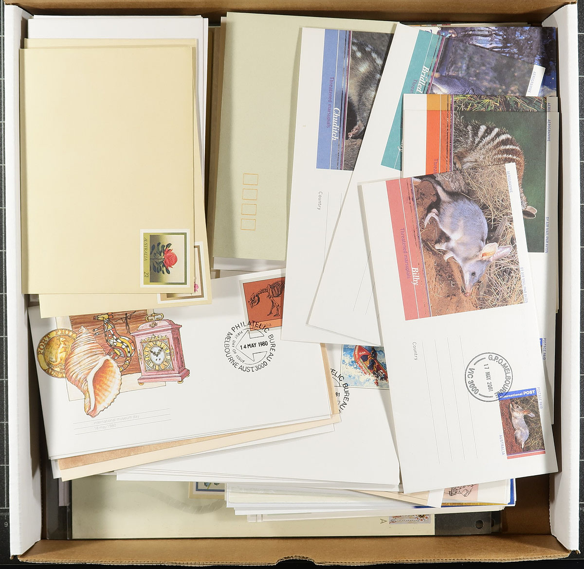 Australia - Postal Stationery. Attractive group of roughly 225 primarily unused Australia postal stationery items, generally ranging from the early 1980's to the early 2000's. We note denominations ranging from 20c to 50c, along with a few "Postage Paid" examples, including a mint and a first day of use example for some issues. We estimate face value in the $50 to $100 range. A nice clean lot for the postal stationery or Australia specialist. Estimate =
