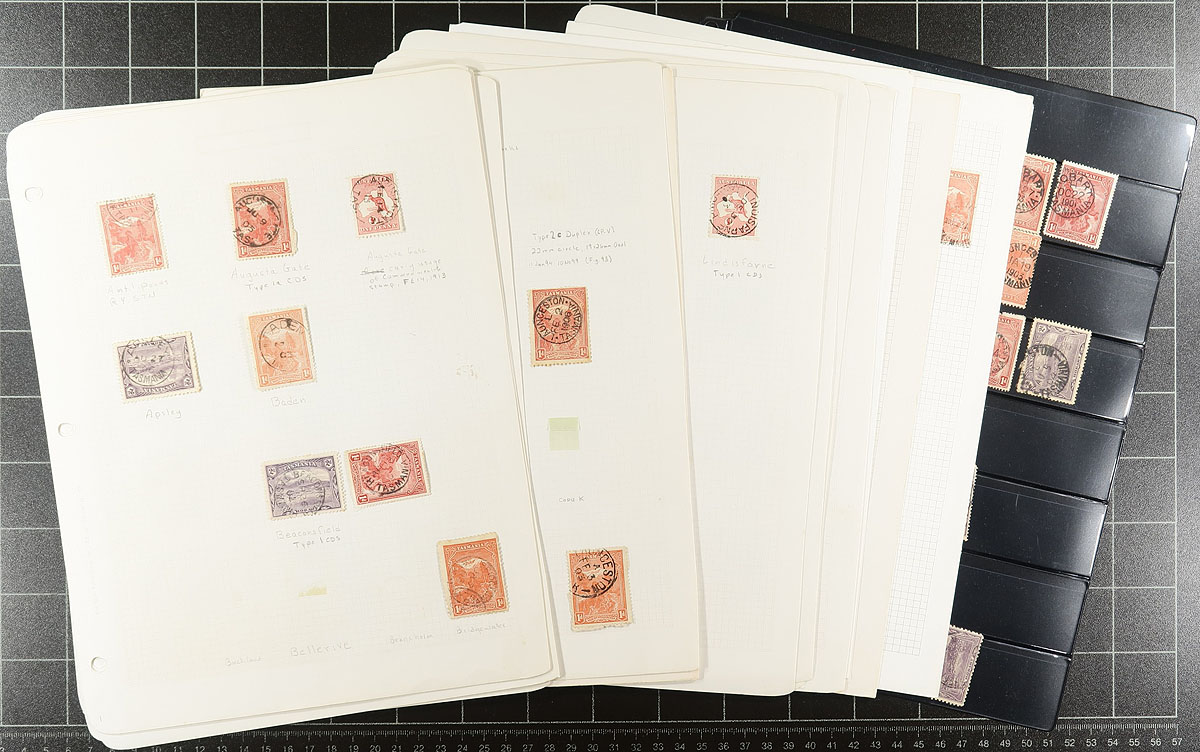 Australian States - Tasmania - Nice collection of roughly 175 Tasmania stamps, collected for town cancels on homemade pages from the 1900's. The collection contains roughly 100 different towns ranging from A to Z, including Surges Bay, Zeeham, Apsley, Fentonbury, and more, with a few towns having different postmark types. A very nice collection with plenty of "socked on the nose" cancels. An ideal collection for the worldwide postmark collector, and should be continued until completion, overall fine to very fine. Estimate =