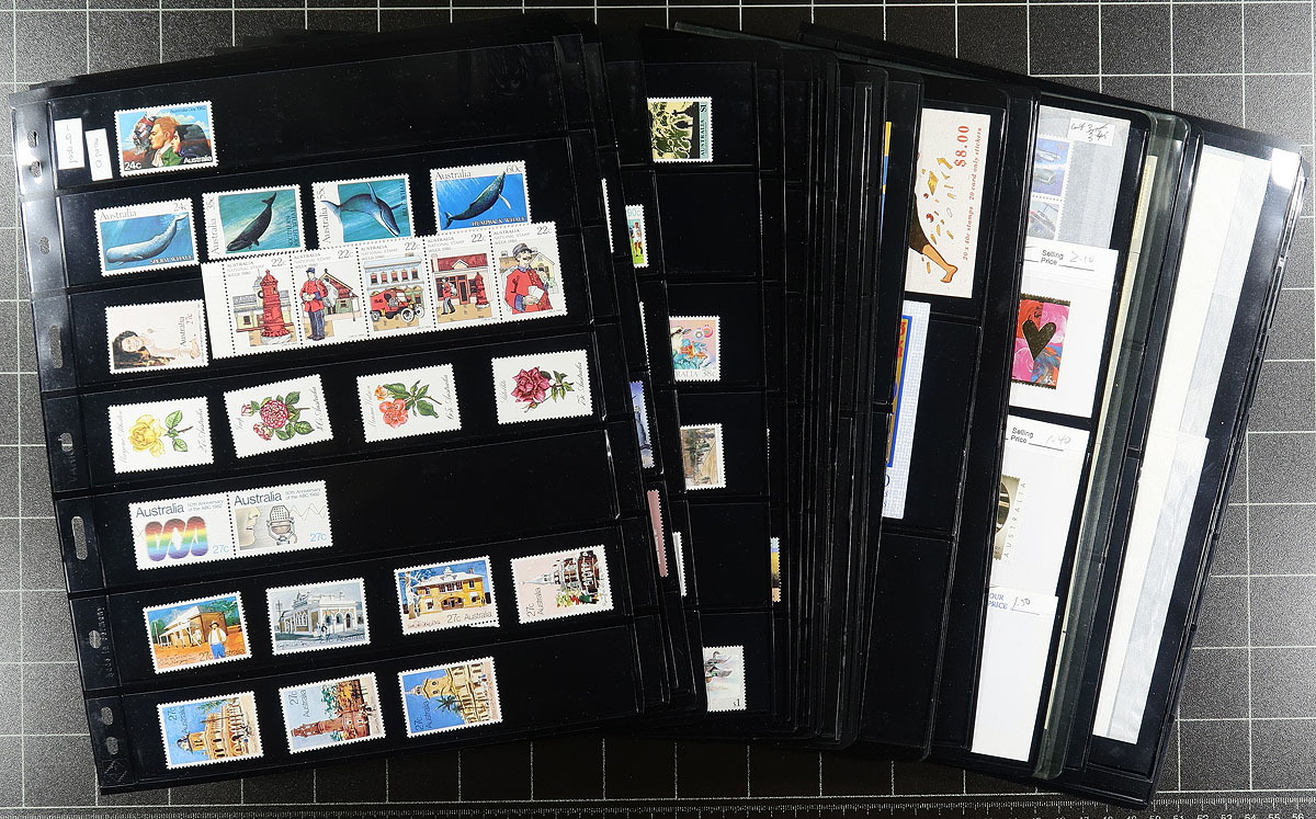Australia #394/2049. Extraordinary VF mint Never Hinged collection (a few hinged and used noted) of Decimal issues from 1966 to 2002, including complete booklets, booklet panes, gutter multiples, souvenir sheets, computer-generated postage and lots of high values up to $20 denominations. Conservatively valued by the face value only, with a much higher Scott catalogue value and lots of potential for the specialist. Face value AUD$623.43 = $567.50 CDN. Estimate =