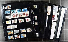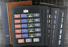 British Commonwealth - QEII-era "Omnibus" or "Common Design" issues covering the 1953 Coronation to the 1981 Royal Wedding, all mint, mostly lightly hinged on fifty "Hagner" black stock pages. Includes non-standard designs. Sets include Royal Visits, Freedom From Hunger, Red Cross, ITU, ICY, Churchill, World Cup, WHO and more weddings and anniversaries. The black pages retail for over $150.00 and are near new. A bonus is an old "Alligator" stockbook with a selection of 1948 Silver Wedding low values from singles to blocks of 8, most with selvedge, often with plate numbers (this last group not counted in the catalogue value). 2024 Scott US$1258.45 =