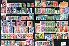 British Commonwealth - Do you like "Classics" that come with chaos, yet shouldn’t take too much effort to re-establish order? If so, this British Colonial lot on 18 black stockpages is for you. In order of appearance: Trinidad, 1935 Silver Jubilee (16 sets, Hong Kong used, rest are mint), British Bechuanaland overprints, Antigua, Bahamas, St. Kitts & Nevis, Victoria (Australia State), plus a range of mostly Caribbean and Pacific Islands. Huge upside potential here, but expect some mixed condition and duplication. Estimate =