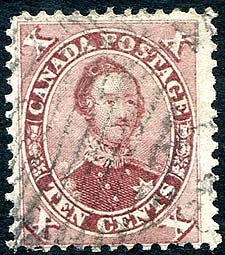 Canada #17. Mint full original gum, hinged (partial hinge remnant) example of the 1859 issue 10c "Consort" in pale red lilac. A sound and Fine "First Cents" decimal classic. 2025 Scott US$2,000.00 =