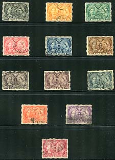 Canada #50/62. A dozen different used Jubilees. Ranges from the 1/2c up to the $2.00 value, missing only the 50c. Unfortunately the dollar value is a space filler, which we have not counted. An occasional perf fault here and there, plus some mixed centering. Most collections that we see stop at the 50c, so this will be an inexpensive way to take the next step! 2024 Scott US$1,476.00 =