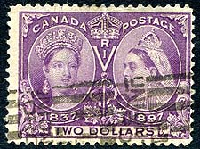 Canada #62. Fine centered used example of the $2.00 dark purple 1897 Queen Victoria Jubilee issue. Tidy "UNION ST’N TORONTO" roller cancel. Vibrant colour on this often faded stamp! 2025 Scott US$550.00 =