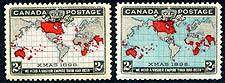 Canada #85, 86. VF mint Never Hinged examples of the grey and blue ocean varieties of the 1898 issue 2c Xmas Map stamp. Unitrade is $360.00 for a VF NH duo. 2025 Scott US$200.00 =