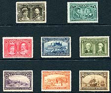 Canada #96-103. Complete mint Hinged set of the 1908 Quebec Tercentenary series of 8 stamps, depicting key moments in history. Fresh appearance, with usual mixed centering and a range of hinging on the back (a couple with minor remnants). One of Canada’s key sets. 2025 Scott US$978.00 =