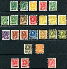 Canada #105f/147. At attractive mint, mostly Never Hinged assembly of 23 George V era issues, from Admirals to 1927 Confederation, all neatly arranged on a single stockpage. Many better individual stamps here, overall a well above average offering. See the owner's inventory sheet for a breakdown of the grading / gum / printings etc. Owner's Unitrade =