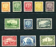 Canada #149-159. F/VF mint Hinged (mostly lightly) complete set of the 1928-1929 George V "Scroll" issue, including both the iconic 50c Bluenose and $1.00 Parliament (both Lightly Hinged). A lovely set. 2025 Scott US$743.15 =