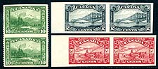 Canada #155c, 156a, 157a. VF centered and fresh mint trio of GeoV Scroll issue imperf and part perf pairs, consisting of the 10c value imperf horizontally (OG, thinned at lower left), plus fully imperforate sheet margin pairs of the 12c & 20c values (both sound and VF, no gum). 2025-2026 Unitrade =