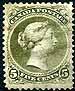 Canada #26iv Variety. F/VF appearing centered used example of the 1875 issued 5c olive green QV Large Queen, perf 11.75x12 (more exactly, 11.7x12) with horizontal mesh. The Unitrade listing is a bit out of alignment on this sub-listing, listing the horizontal mesh variety (#25v) as perf 11.5x12, when it the horizontal mesh is actually on the 11.75x12 listing (#25iv). Unitrade catalogues 25v horizontal mesh at $750.00 for fine. Light horizontal crease, but still a nice example of this variety. Estimate =