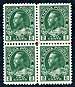 Canada #107a. VF mint Never Hinged block of four of the 1924 printed 2c yellow green Admiral, wet printing on thin paper. A nice example of this sub-listing, acknowledged in both Scott and Unitrade. 2025 Scott US$200.00 =