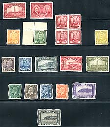 Canada #143/201. A selection of mint King George V issues, with a couple from the 1927 sets, much of the "Scroll" issue (the lower values are never hinged), and some of the "Medallion" issue and the extra 12c "Citadel". An easy way to fill in some of those better holes in your collection, especially the Parliament dollar. All valued as Hinged. 2025 Scott US$732.00 =
