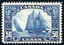 Canada #158. VF mint Never Hinged example of the 1929 issue 50c Bluenose. Canada's best-known stamp, a "must have" item in any self-respecting Canadian collection. 2025 Scott US$425.00 =