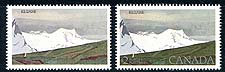 Canada #727a. VF mint Never Hinged example of the 1979 issue $2.00 Kluane with the missing silver inscriptions error. Only 500-600 examples of this error exist. Unitrade value is low, considering how infrequent we see these. Accompanied by regular issue for comparison. 2025-2026 Unitrade =