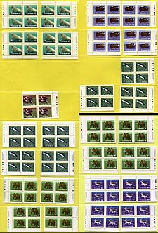 Canada - Mint plate block accumulation #2: The "later" regular issues. Generally, 1970-1985 (with a few earlier slipping in) commemoratives and definitives, with a mix of single corners and matched sets. A few of the modern are in their original PO packs. From an assortment of former bidboard lots, so there is an uneven mix of issues (including a blend of hinged and never hinged). Includes better early 1970's issues such as CBC, Vimy, Geological, Landscapes. There might be a couple of "field stock" corners, but most are inscription corners. The total catalogue value will be enormous. Estimate =